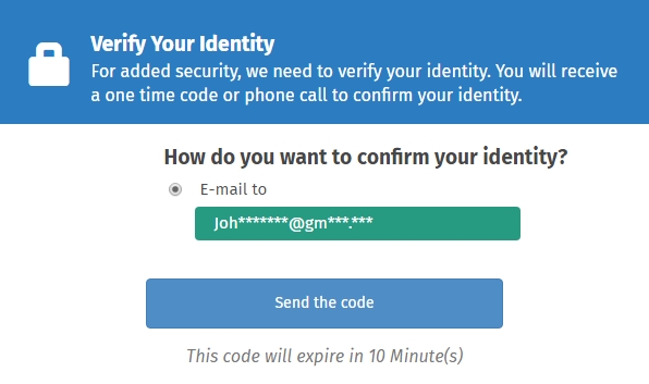 - The code will be sent to your email address and will be valid for 10 minutes.